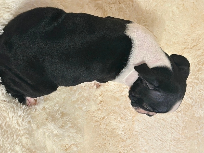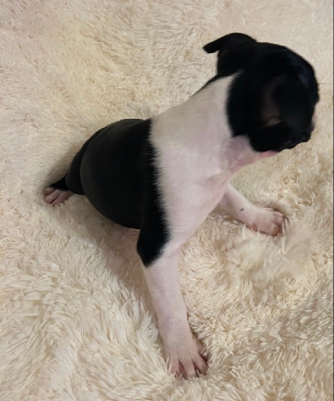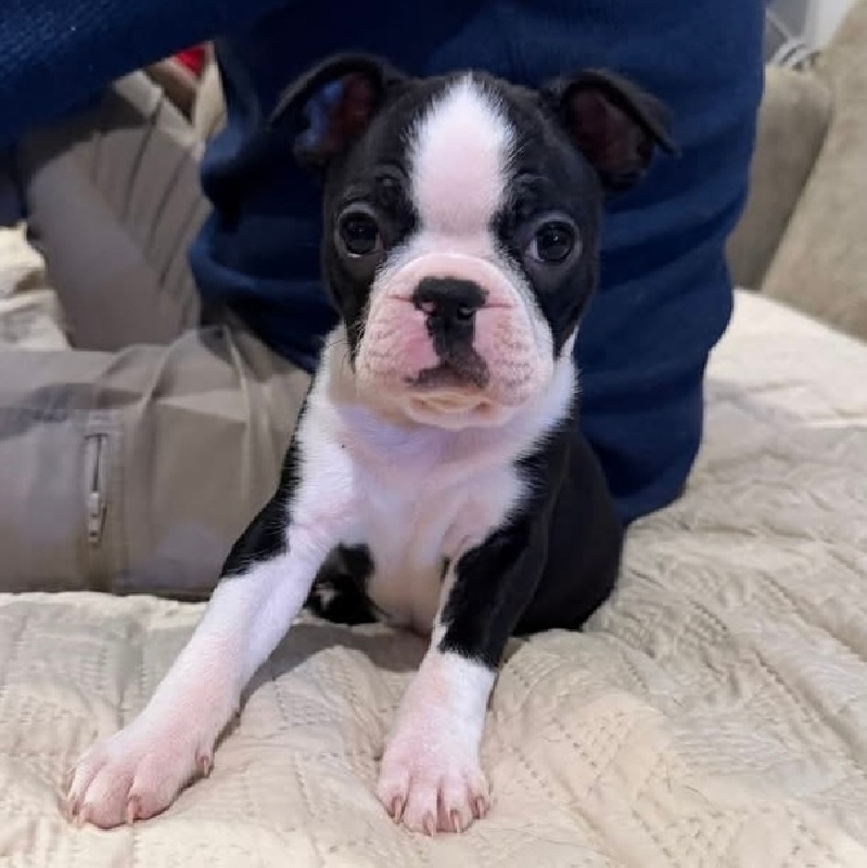 Boston Terrier One black & white female remaining with gorgeous markings. This beautiful litter of 6 born on 11/6/25. First Vet visit complete with shots and deworming. This little lady is looking for a wonderful family. 337-322-1188