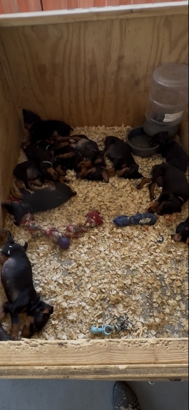 European Doberman Akc regs euro Doberman pups. 8 wks old 2 males 2 females avail. Utd on vaccines parents on premises. 225-953-3629