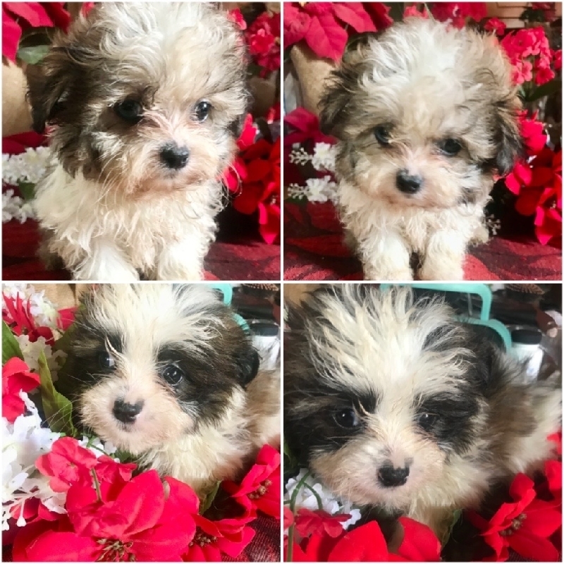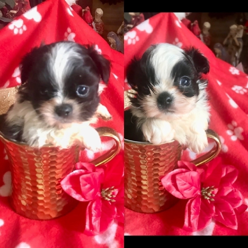 Malti Poo Tzu and Malti Tzu I have 4 male puppies 8 weeks old .Born on 12/14/2025. Two Malti Tzus and 2 Malti Poo Tzus All puppies are UTD on shots and worming. The Malti Tzus are black and white . The Malti Poo Tzus are red and white . One has a blue eye . All puppies are healthy, pee pad trained and ready for their forever home .