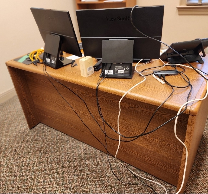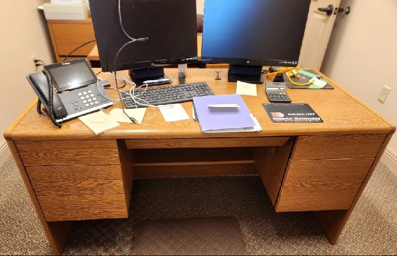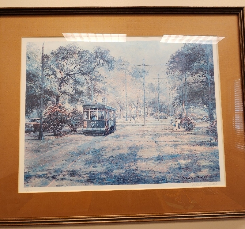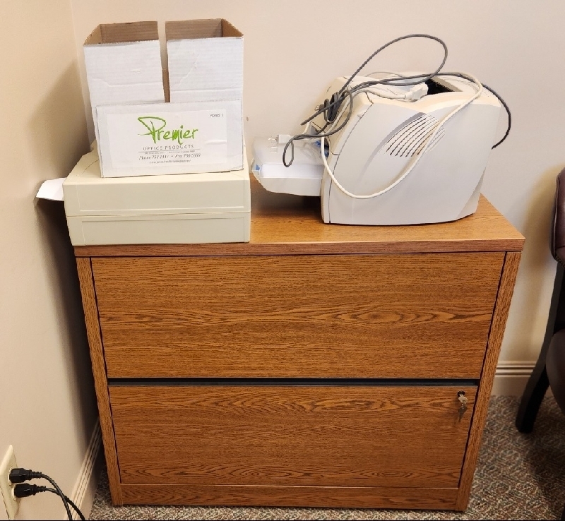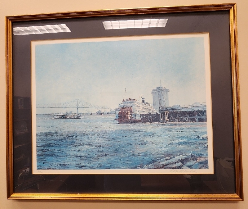 HON "Honey Oak" 6 drawer locking desk, 2 drawer locking lateral filing cabinet & bookcase and 3 framed set, signed & numbered 68/900 Robert Rucker art prints of New Orleans. All in excellent condition. 225-335-6735